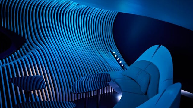 Ihr Abenteuer beginnt in der Blue‑Eye‑Lounge: Zwei beeindruckende Panorama‑Bullaugen öffnen sich unter der Wasserlinie in die geheimnisvolle Welt der Meere, während Unterwassermikrofone das Rauschen der Tiefe hörbar machen und Vibrationssitze jede Bewegung spüren lassen – ein weltweit einzigartiges, multisensorisches Erlebnis.