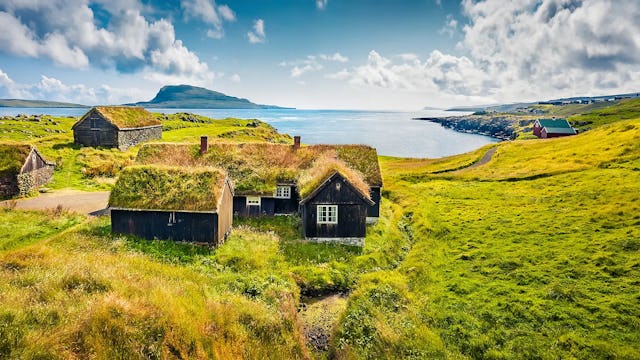 Nordwärts erwarten die Färöer-Inseln ihre wilden Klippen: Suduroys sanfte Hügel und dramatischen Abgründe, Streymoys tosende Vogelkolonien und ungezähmte Fjorde wecken Ihren Forschergeist.